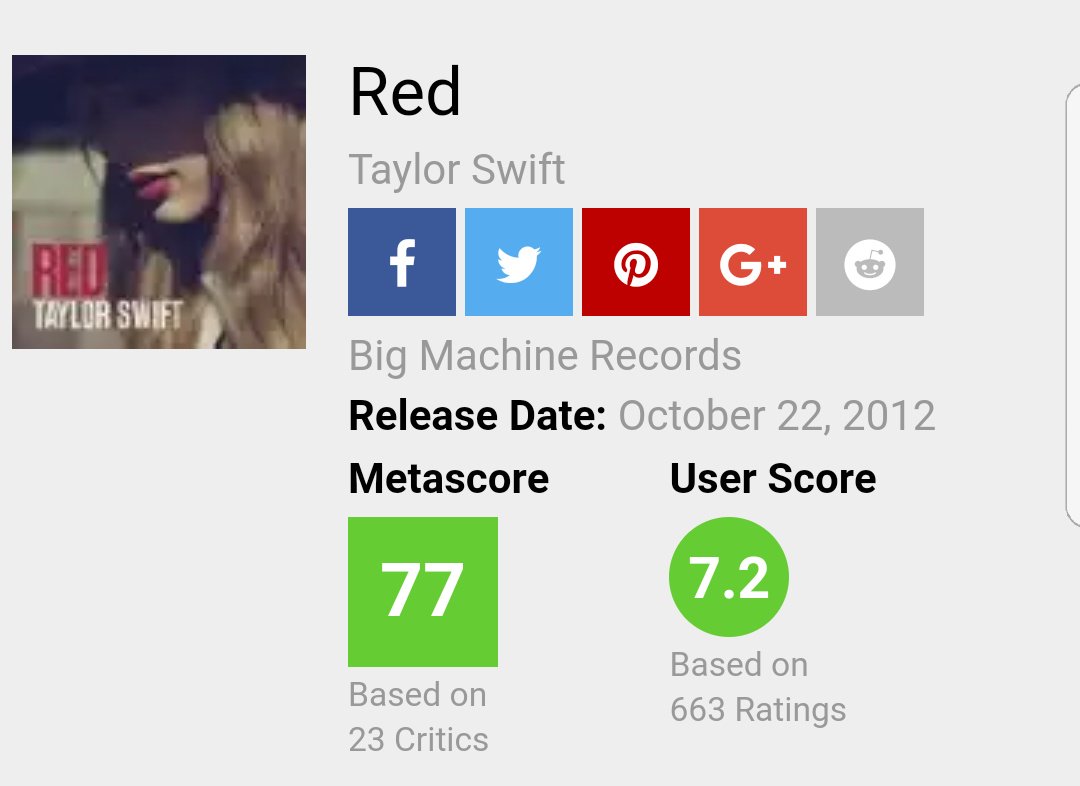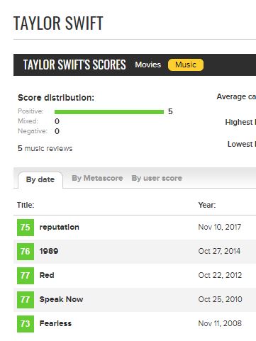 Taylor Crave On Twitter Metacritic Scores Of Taylor Swift And Other Major Pop Girls A Thread 1 Taylor Swift 73 77 77 76 Average 75 75 Https T Co Dhi56k3dgn
