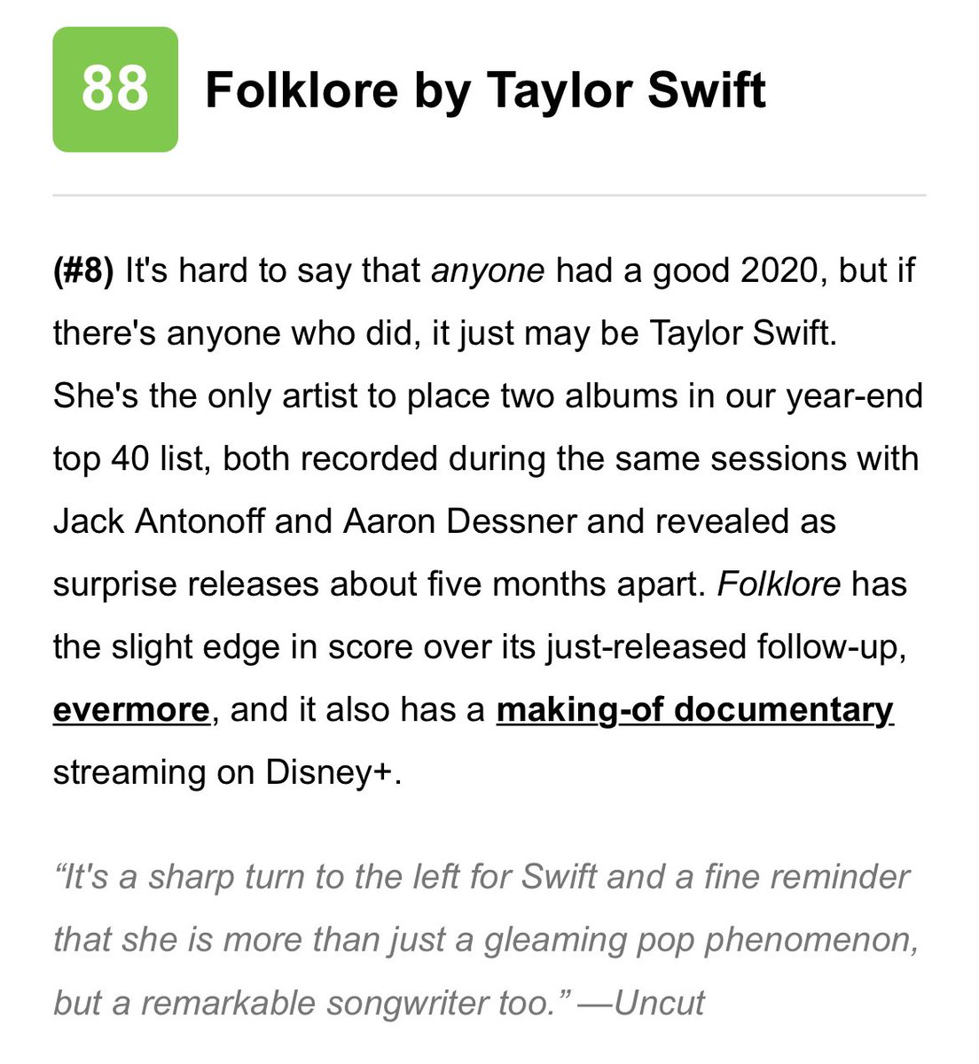 Taylor Swift News On Twitter Folklore And Evermorealbum By Taylor Swift Rank As 8 And 22 In Metacritic S Best Albums Of 2020 List She S The Only Artist To Place Two